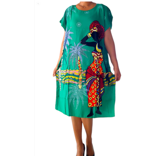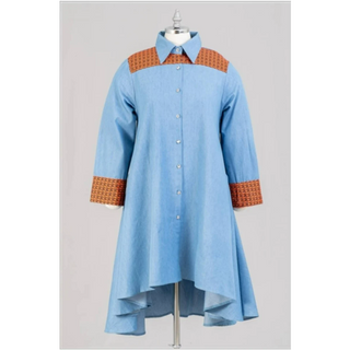 African Woman Sequin Embroidery Long Tunic Shirtdress High Low Midi Dress / One Size Fits M - 2XL