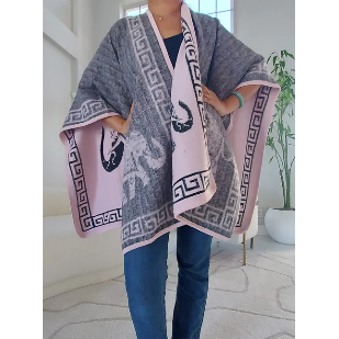 Blanket Shawl/ Poncho Reversible Two Tone Throw- Elephant Print Sweater