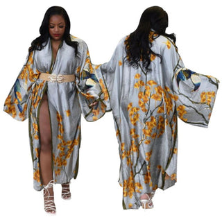 Leopard Print Long Kimono Duster Robe Coat Cover Up Kaftan Caftan