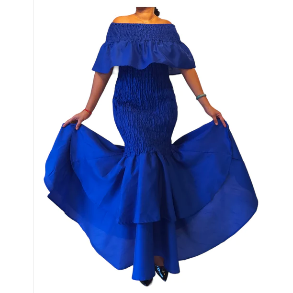 African Print Dashiki Denim Print Long Maxi Dress with headwrap head scarf - Plus Size