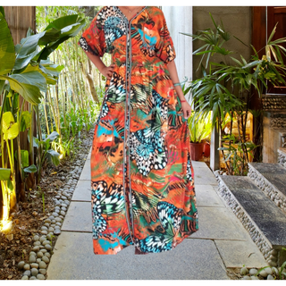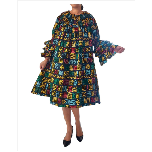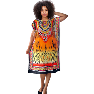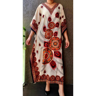 Ethnic Tribal Print Umbrella Beach Dress Long Kaftan Loungewear Duster