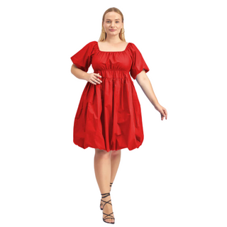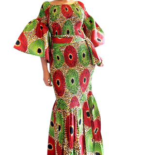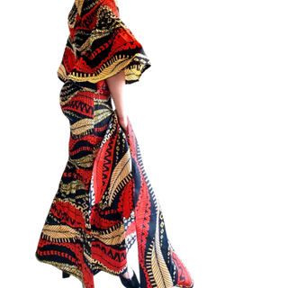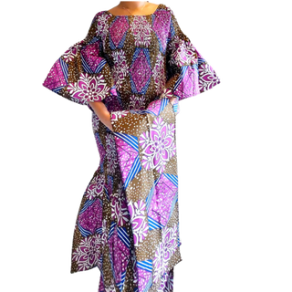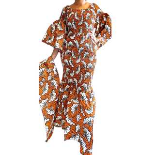 Comfortable Balloon Maxi Dress with Pleated Sleeves & Elastic Hem with sash / head wrap
