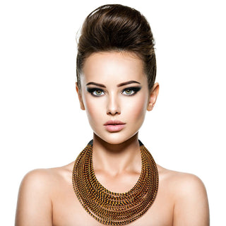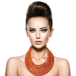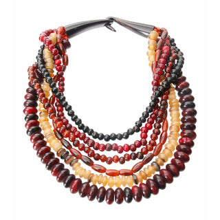 African Tribal Graduated Multi Bead Buffalo Statement Necklace