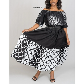 African Ankara Style Print Long Smocked Maxi Sundress with Headwrap - One Size Fits S - 2XL