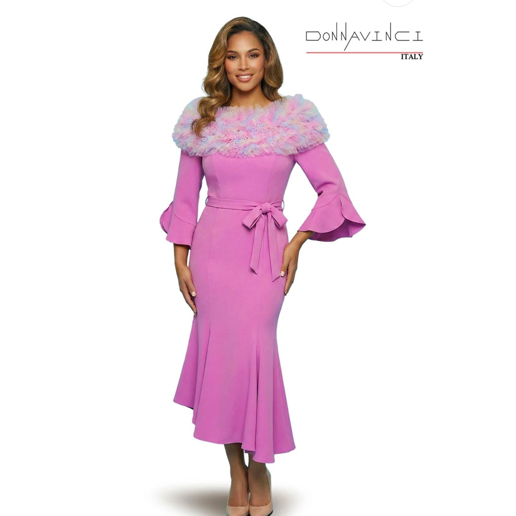 Graceful, feminine, and beautifully refined, the Donna Vinci 12251 Dress is a standout Spring 2026 design created for women who appreciate elegance with comfort. Crafted from poly crepe fabric with stretch, this one-piece dress offers a flattering fit with ease of movement, making it perfect for all-day wear.