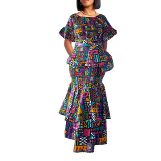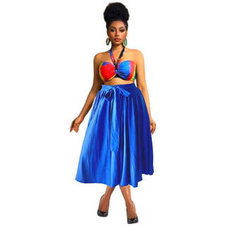 African Ankara Print Midi Skirt with Pockets and Headwrap/Sash